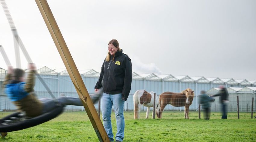 Zorgteam Martin & Simone bestaat sinds 2019. ‘We begonnen met opvang in vakantiehuisjes’, vertelt Simone. ‘Dat was zo leuk en waardevol dat we droomden van een plek waar we meer kinderen konden begeleiden. Die nieuwe locatie barstte al snel uit zijn jasje. Het aantal kinderen groeide, ons team breidde uit en de vraag werd steeds groter. Tijdens onze zoektocht naar een nieuwe plek ontstond de wens om een zorgkwekerij te starten: een logische combinatie van onze zorgexpertise en de kwekerservaring in de familie.’